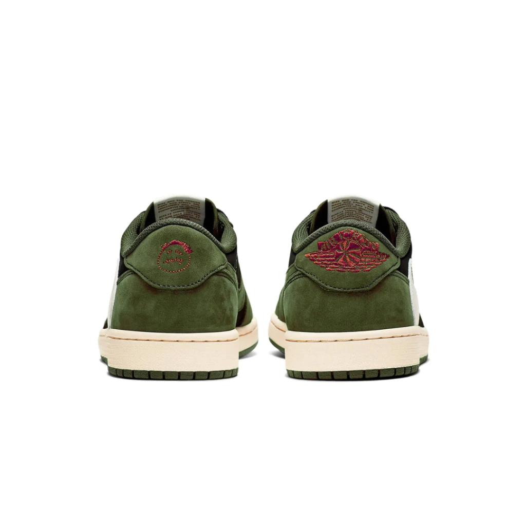 Nike Air Jordan 1 Low Travis Scott Black Olive presentará como novedad una paleta de colores en negro, vela, olivo medio y muselina, manteniéndose fiel a sus esfuerzos conjuntos anteriores. Aunque no han aparecido imágenes filtradas, se espera que los tenis incorporen una combinación de cuero y nobuck, lengüetas de malla y forro interior. Detalles destacados incluirían el icónico swoosh invertido en el lateral, la marca en la lengüeta de Cactus Jack y los logotipos de la cara del rapero en los talones. El diseño se completa con una entresuela envejecida para darle ese toque vintage que tanto amamos.